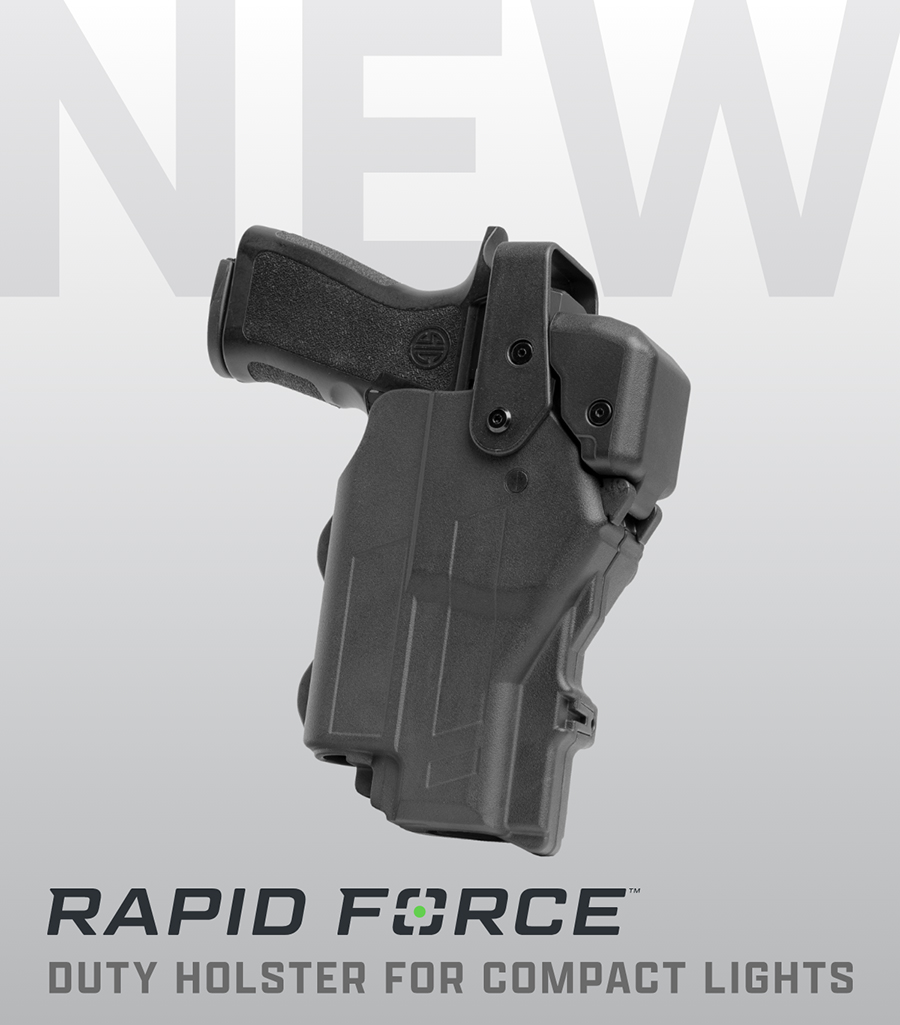 Introducing the Rapid Force Duty Holster for Compact Lights – designed for the safety and comfort of law enforcement officers. Its reduced form factor ensures comfort during long hours in a patrol car, while its durability and ease of use make it perfect for any field situation. With level 3 retention and maximum trigger protection, your firearm stays secure while allowing for a faster-than-level-2 draw in rapid response situations. Stay safe with the Rapid Force Duty Holster for Compact Lights.